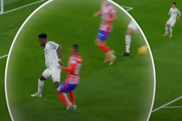 In the 31st minute, a cross ball was thrown from the left winger toward the box by an Atletico player, and in the process, Tchouameni happened to step over the foot of a striker slightly, and that player, Lino, showed the signs of somehow being hurt. With the VAR and referee’s monitor checking, this tackle was declared a foul, and the penalty was awarded to Atletico Madrid, and they scored an easy goal. The ball was lobbed straight into the center of the post, but Courtois dived to his left on the ground.
